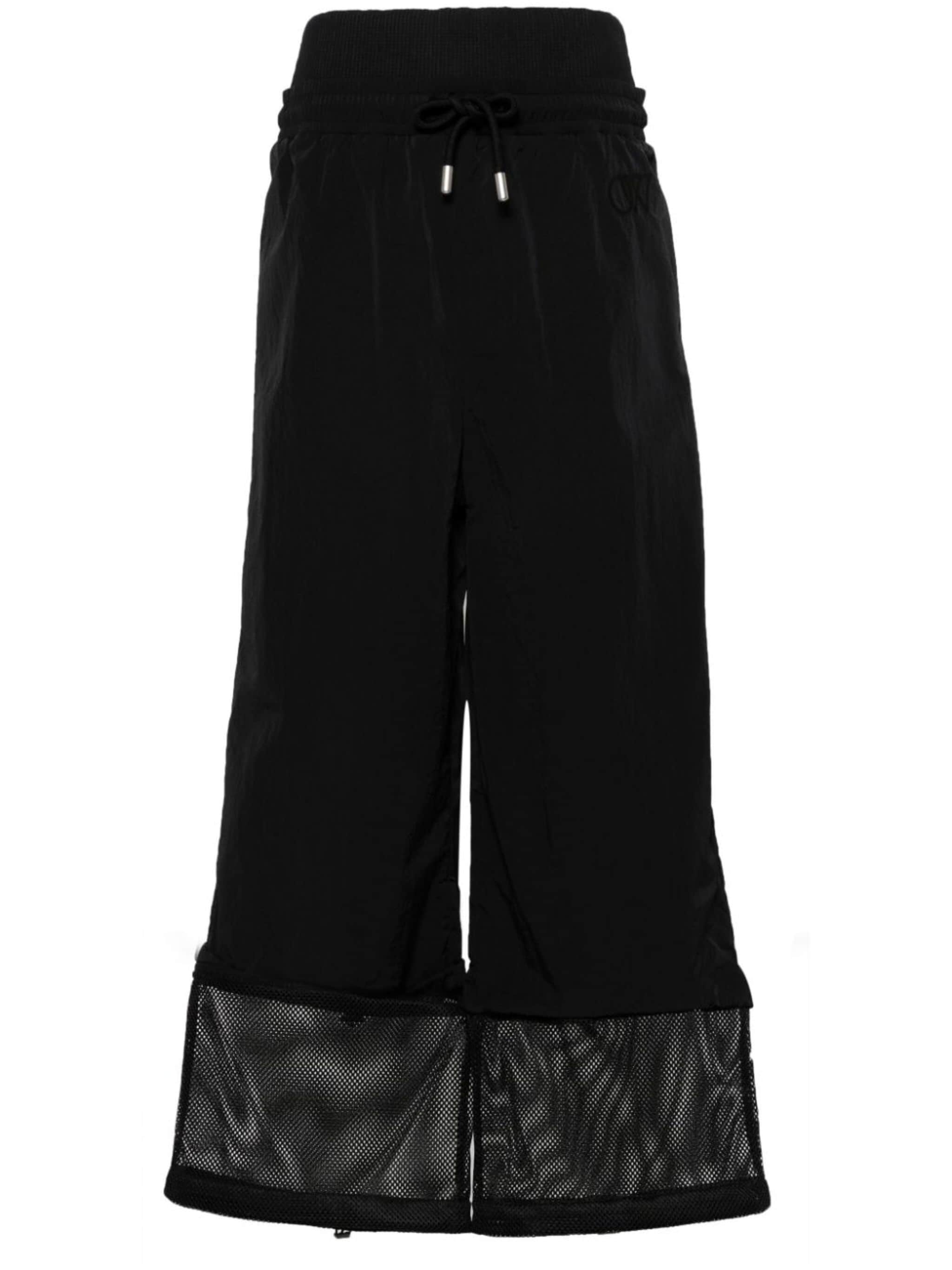 black technical jersey high waist wide leg double elasticated drawstring waistband embroidered logo to the front rear welt pocket detachable mesh cuffs Size & Fit Model Measurements: Height: 1.76 m Bust/Chest: 82.0 cm Hips: 88.0 cm Waist: 60.0 cm Model wears size 40 Fabric and Care Designer Style ID: OWVG073S24FAB0011010 Designer Colour: 1010 BLACK BLACK Composition: Outer: Polyamide 100%, Polyester 100%; Lining: Polyamide 100% Washing instructions: Machine Wash Made in Italy