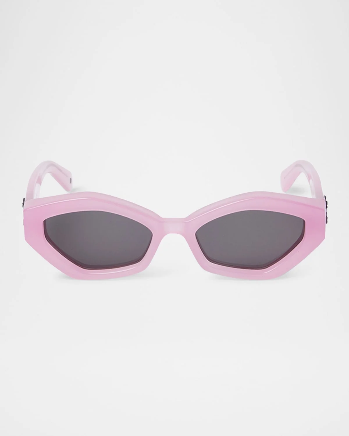 - Off-White "Hilo" cat-eye sunglasses in acetate - Eye/bridge/temple (in mm): 55-19-145 - Solid lenses - Saddle nose bridge - Thin, tapered arms - Arrow detail at the temples - Acetate - 100% UVA/UVB protection - Made in Italy - Proposition 65 warning for California residents
