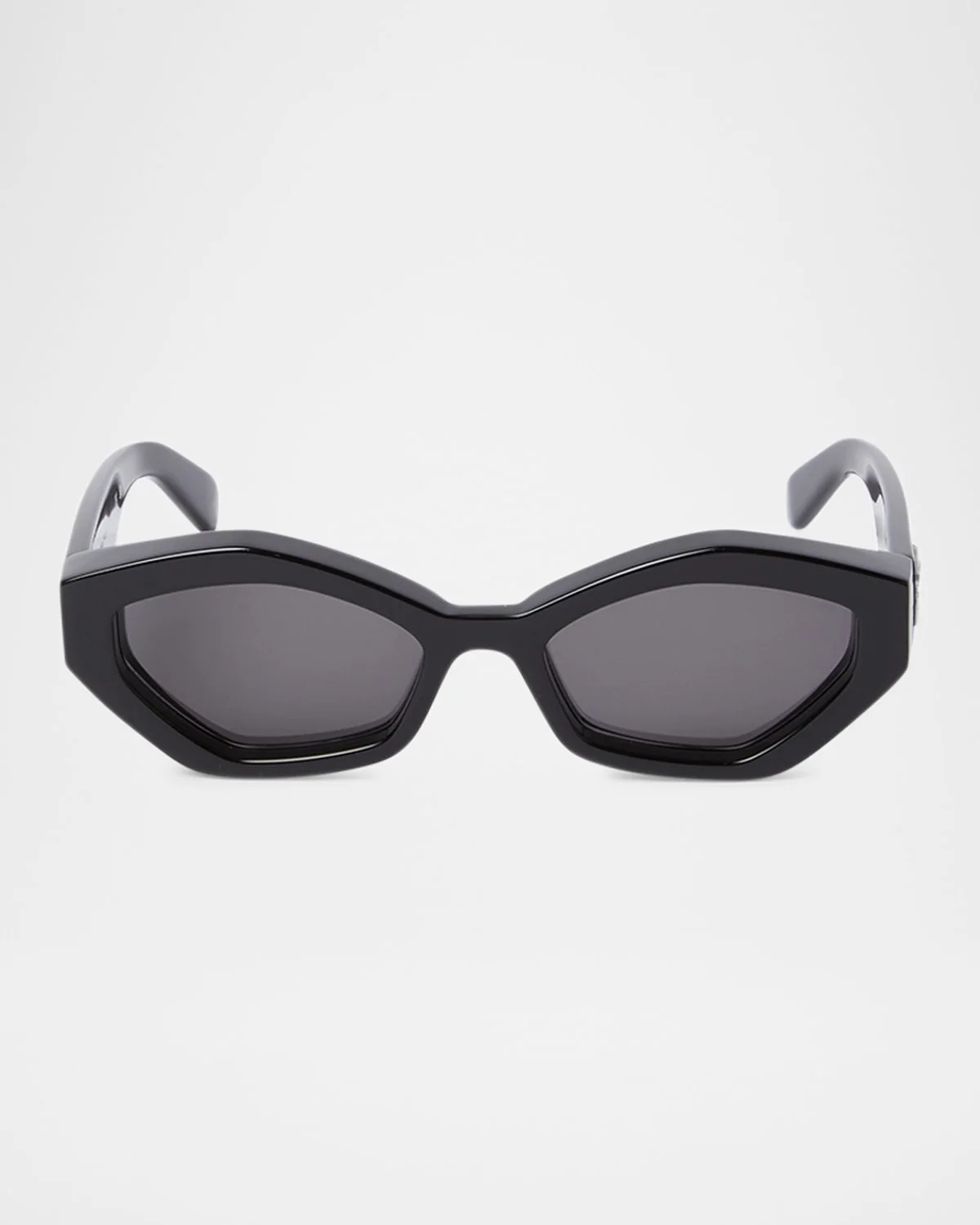 - Off-White "Hilo" cat-eye sunglasses in acetate - Eye/bridge/temple (in mm): 55-19-145 - Solid lenses - Saddle nose bridge - Thin, tapered arms - Arrow detail at the temples - Acetate - 100% UVA/UVB protection - Made in Italy - Proposition 65 warning for California residents