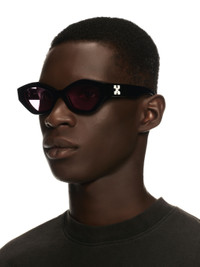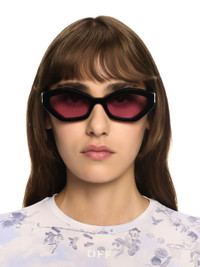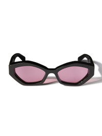 These acetate sunglasses feature a three-dimensional geometric cat-eye silhouette with sharp lines and heavily encased lenses for exaggerated depth. They are completed with arrow logo plaques on the arms. Made in Italy. DETAILS - Acetate 100% - Code: OERI144S25PLA0011030