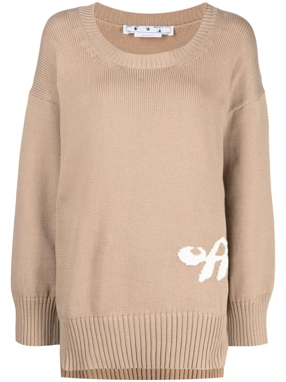 intarsia-logo ribbed jumper Off-White can always be trusted to imbue each collection with its stand-out casual pieces, and SS22 is no exception. Forming part of the new-season offering, this cotton-blend jumper is detailed with a contrasting intarsia-knit logo to the left hip. Made in Italy Composition Body: Cotton 57%, Polyamide 43% SIZE & FIT Model measurements Height 5 ft 10 in(1.78 m) Bust/Chest 28.34 in(72 cm) Hips 35.43 in(90 cm) Waist 23.62 in(60 cm) FittingInformation This piece fits true to size. We recommend you get your regular size Cut for a loose fit Made with a mid-weight fabric Washing instructions Dry Clean Only