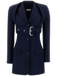 belted blazer Highlights - Blue - Virgin wool blend - Front button fastening - Long sleeves - Detachable and adjustable waist belt - Internal logo patch Made in Italy Composition Outer: Virgin Wool 93%, Spandex/Elastane 4%, Nylon 3% Lining: Viscose 100%