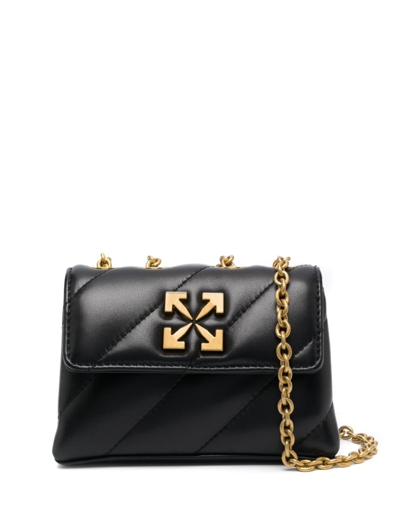 Jackhammer mini bag Off-White pairs a classic structured silhouette with contrasting gold and silver-tone hardware on this Jackhammer mini bag. Constructed from black quilted calf leather, this blend of timeless and modern detailing speaks to the brand's idea of 'embracing the now in a sophisticated manner'. Highlights - Black - Calf leather - Smooth grain - Quilted finish - Signature arrows motif - Leather and chain-link shoulder strap - Foldover top with magnetic fastening - Partitioned compartment - Internal card slot - Mixed-metal hardware Made in Italy Composition Lining: Cotton 100% Outer: Calf Leather 100% SIZE & FIT Model measurements Height 5 ft 9 in(1.75 m) Bust/Chest 31.5 in(80 cm) Hips 33.9 in(86 cm) Waist 24 in(61 cm) Measurement DEPTH 2.4 in(6 cm) HEIGHT 4.3 in(11 cm) STRAP 19.7 in(50 cm) WIDTH 6.3 in(16 cm)