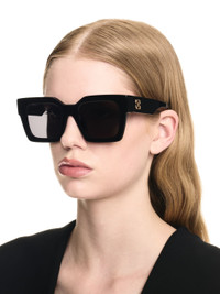 These acetate sunglasses reinterpret the Catalina models with an oversized square silhouette and a slimmed-down architectural frame. They are completed with metal arrow logos on the arms. Made in Italy. MATERIALS 100% Acetate FITTING Model Lee Donggyu wears size O/S Height: 6' 1'' (185 cm) Chest: 33'' (84 cm) Waist: 26” (66 cm) Hips: 33'' (85 cm)