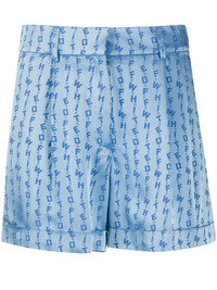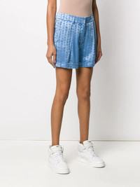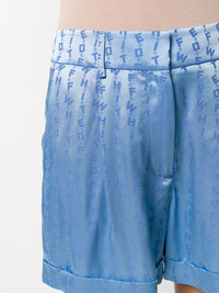 jacquard logo shorts Blue represents both the sky and the sea, being associated with open spaces and freedom. Accurate, since you'll be wearing these light blue jacquard logo shorts from Off-White out in the open. Touche! Featuring a high rise, belt loops, a concealed front fastening, side slit pockets, rear welt pockets, turn up cuffs, a short length and tonal jacquard logos all-over. Made in Italy Composition Polyester 100%, Acetate 53%, Viscose 47%