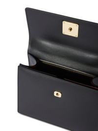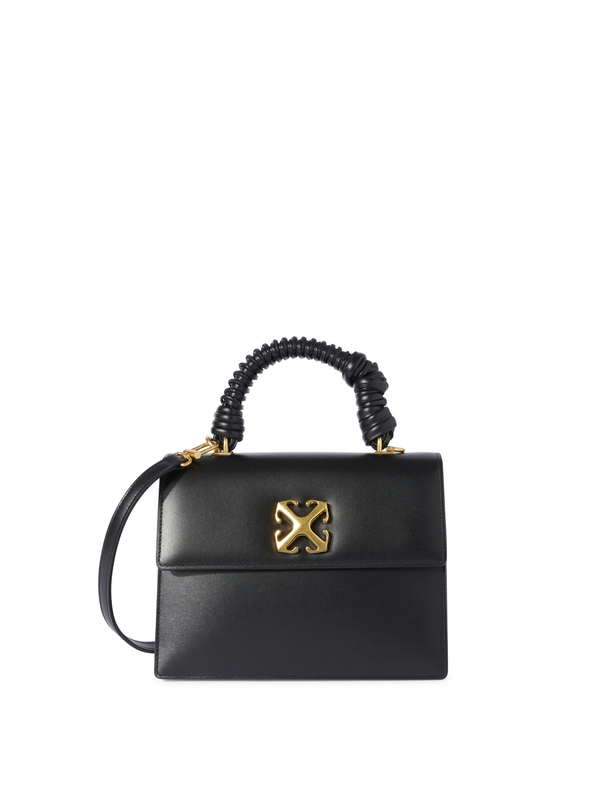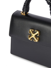 Black jitney top handle bag featuring gold arrows at front. Tonal shoulder strap and gold details. MATERIALS Outer: 100% Calf Leather Lining: 100% Calf Leather FITTING Bust 83cm Height 178cm Hips 87cm Waist 62cm