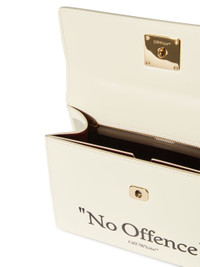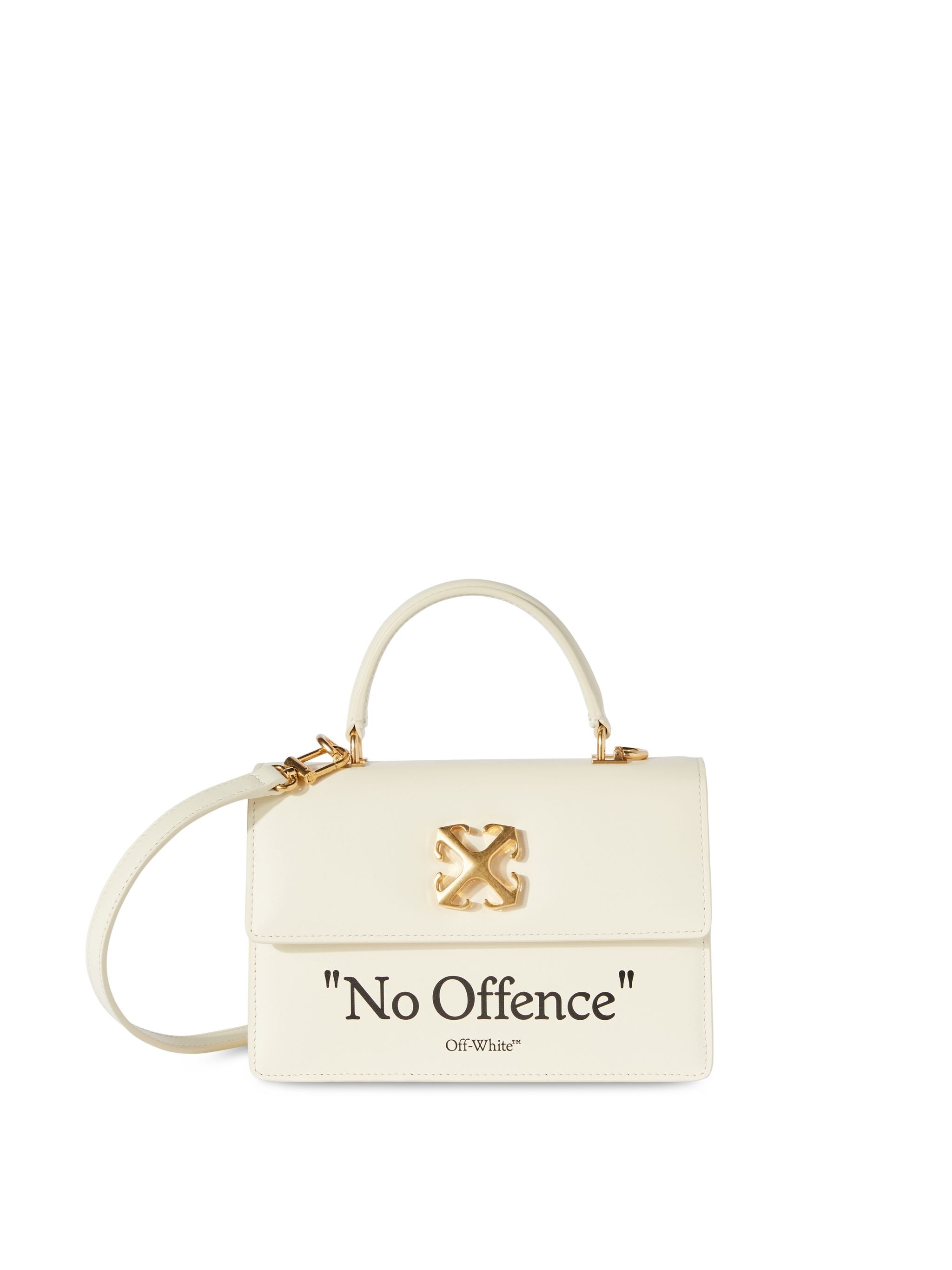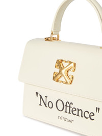 White handle jitney bag featuring gold arrows, black "No Offence" and Off-White logo at front. MATERIALS Outer: 100% Calf Leather FITTING Bust 0cm Height 0cm Hips 0cm Waist 0cm