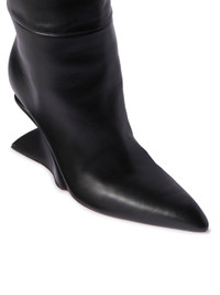 These Jug boots are crafted from 100% leather and feature wedge heels. Made in Italy. MATERIALS Lining: 100% Leather Outer: 100% Leather Sole: 100% Leather FITTING Model Yi Xiang wears size 39 Height: 5' 8'' (177 cm) Chest: 30'' (77 cm) Waist: 25” (60 cm) Hips: 34.5'' (88 cm)