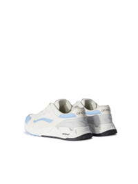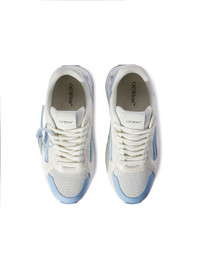 White Running sneaker with Off-white logo in black at side and light blue details at front and side.Black and light blue sole detail.White laceup. MATERIALS Lining: 100% Polyester Sole: 100% Rubber Outer: 100% Leather FITTING Bust 0cm Height 0cm Hips 0cm Waist 0cm