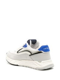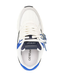 Kick Off lace-up sneakers Inspired by running footwear, the Kick Off sneakers are constructed with panels of leather and mesh for enhanced breathability. The silhouette is punctuated with Off-White's signature accents, such as an embossed logo and the iconic Zip-Tie tag -- showcasing the brand's street-style core. Highlights - Off-white/blue - Leather - Mesh panelling - Signature zip tie tag - Logo patch at the tongue - Front lace-up fastening - Round toe - Branded insole - Branded heel counter - Flat rubber sole - Due to the dyeing process used, this product must not come into contact with water. Imported Composition Sole: Rubber 100% Outer: Calf Leather 57%, Polyamide 43% Lining: Fabric 100% SIZE & FIT Measurement HEEL 1.57 in(4 cm) Sole height 0.78 in(2 cm)