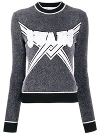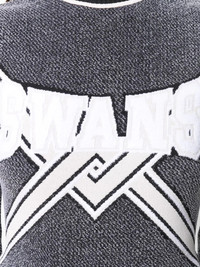knitted logo top Grey, black and white knitted logo top from Off-White featuring a ribbed crew neck, long sleeves, a ribbed hem and cuffs, a straight hem and an intarsia knit. Made in Italy Composition Viscose 76%, Polyamide 14%, Polyester 10% SIZE & FIT Model measurements Height 5 ft 10 in(1.78 m) Bust/Chest 31.49 in(80 cm) Hips 36.22 in(92 cm) Waist 25.59 in(65 cm) FittingInformation This piece fits true to size. We recommend you get your regular size Cut for a slim fit Made with a mid-weight fabric Washing instructions Dry Clean Only