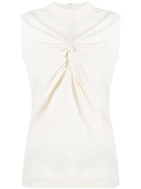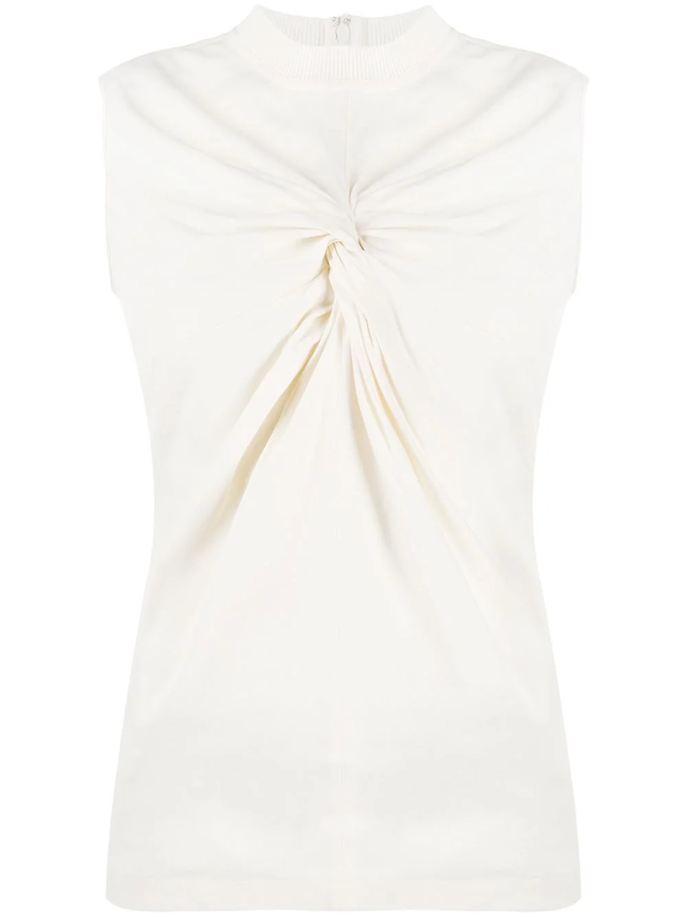 knot-detail sleeveless T-shirt Less is more! Versatile and with a comfy fit, this white linen-blend sleeveless T-shirt from Off-White will add a cool vibe to any of your everyday looks. Level up, girl. Featuring a ribbed round neck, a sleeveless design, a loose fit and a straight hem. POSITIVELY CONSCIOUS: At least 50% of the main material of this product meets our conscious criteria: for example, it's either organic, recycled, upcycled, or independently recognised as being better for the environment (such as linen, ramie, Tencel, etc.). Made in Italy Composition Linen/Flax 59%, Viscose 38%, Spandex/Elastane 3% SIZE & FIT Model measurements Height 5 ft 11 in(1.8 m) Bust/Chest 31.1 in(79 cm) Hips 34.25 in(87 cm) Waist 22.83 in(58 cm) FittingInformation This piece fits true to size. We recommend you get your regular size Cut for a slim fit Made with a mid-weight stretch fabric Washing instructions Dry Clean Only