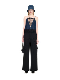 This slip top is crafted from denim cotton with a lace insert and waistband. Made in Italy. MATERIALS 100% Cotton FITTING Model Sarah Ferguson wears 38 Height: 5' 10.5'' (179 cm) Chest: 31'' (79 cm) Waist: 23” (60 cm) Hips: 35'' (89 cm)