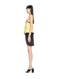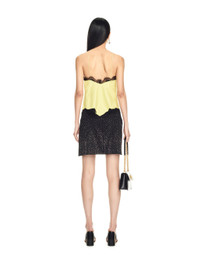 This 100% nappa leather top is lined and features fine shoulder straps. A lace trim across the bust continues down the centerline to the asymmetric hem. Regular fit. MATERIALS Outer: 40% Polyamide Outer: 100% Lambskin Lining: 100% Viscose Outer: 28% Modal Outer: 32% Cotton FITTING Bust 82cm Height 180cm Hips 90cm Waist 58cm