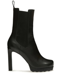 leather heeled boots Off-White presents a contemporary take on a classic silhouette with these boots for AW22. Crafted from calf leather, this design boasts a dramatic high heel for an elevated and modern finish. Made in Italy Composition Outer: Leather 100% Lining: Leather 100% Sole: Leather 70%, Rubber 30%