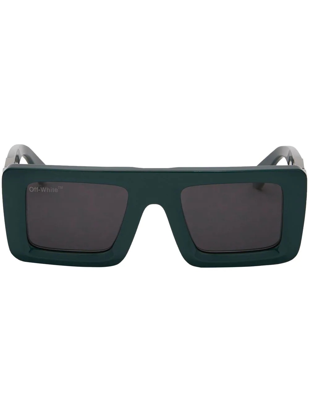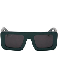 Leonardo square-frame sunglasses Off-White moves away from their signature black and white colour palette with these sunglasses. In a forest green hue, they are simply detailed with the iconic Arrows motif to the side for a modern finish. Made in Italy Composition Acetate 80%, Metal 20% SIZE & FIT Measurement Arm Length 5.7 in(14.5 cm) Bridge Width 0.94 in(2.4 cm) Lens Diameter 2 in(5.1 cm) Total Width 5.59 in(14.2 cm)