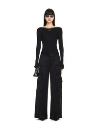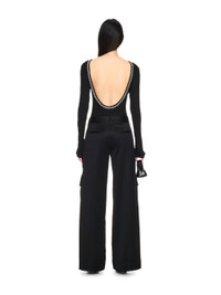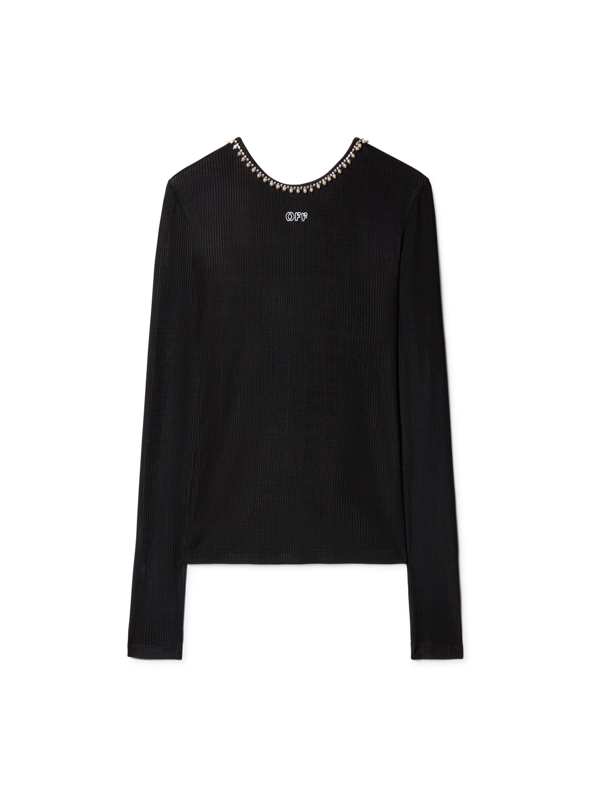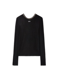 This long-sleeved top features a small embroidered logo and crystal embellishments on the collar. It is crafted from ribbed fabric with elastane for a close fit. Made in Italy. MATERIALS 94% Viscose 6% Spandex/Elastane FITTING Model Yi Xiang wears size 38 Height: 5' 8'' (177 cm) Chest: 30'' (77 cm) Waist: 25” (60 cm) Hips: 34.5'' (88 cm)