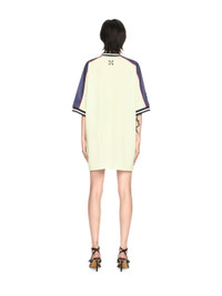This mini dress features soccer-inspired logos and badges and contrasting stripes on the v-neck and sleeves. Loose fit. MATERIALS 100% Polyester FITTING ZHENDAN WEARS SIZE S HEIGHT: 5' 7” (175 CM) BUST: 29” (74 CM) WAIST: 25“ (64 CM) HIPS: 33” (86 CM)