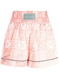 logo-applique high-waist mini shorts Highlights - Light pink - White - Applique logo - Monogram pattern - Elasticated waistband - High waist - Two side inset pockets - Straight hem Made in Italy Composition Viscose 100% SIZE & FIT Model measurements Height 5 ft 10 in(1.77 m) Bust/Chest 31.49 in(80 cm) Hips 35.43 in(90 cm) Waist 25.19 in(64 cm) FittingInformation Designed for a loose fit, offering comfort and movement when worn The elasticated waist allows for a comfortable fit Made from a lightweight non-stretch fabric This piece fits true to size – take your usual size Washing instructions Dry Clean Only