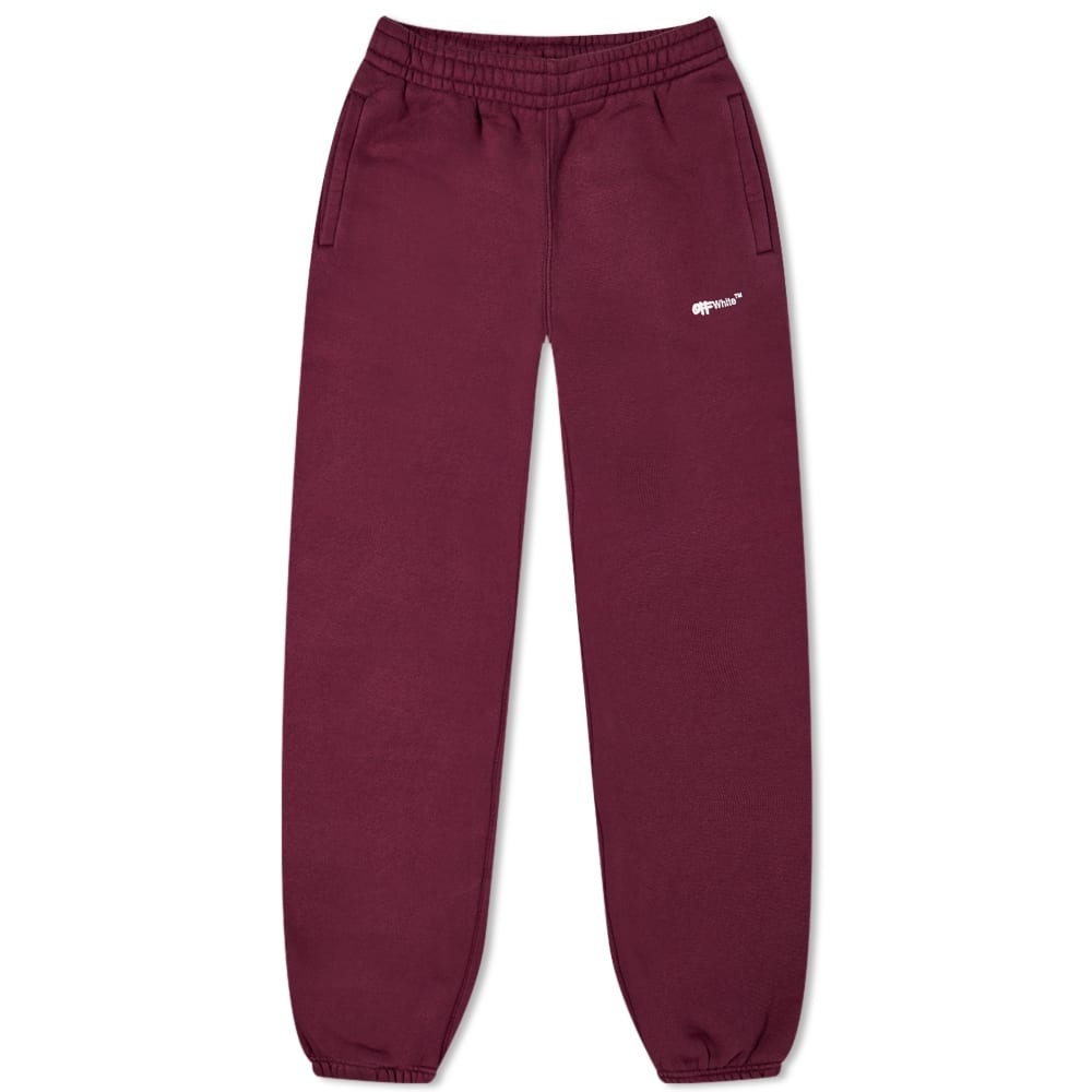 Off White promises to keep you cosy - and ultimately stylish - thanks to these burgundy sweat pants. Crafted in Portugal from soft cotton, the pair feature comfy elasticated cuffs and are complete with graffiti-style branding at one leg. - 100% Cotton - Elasticated Cuffs - Printed Branding - Made in Portugal