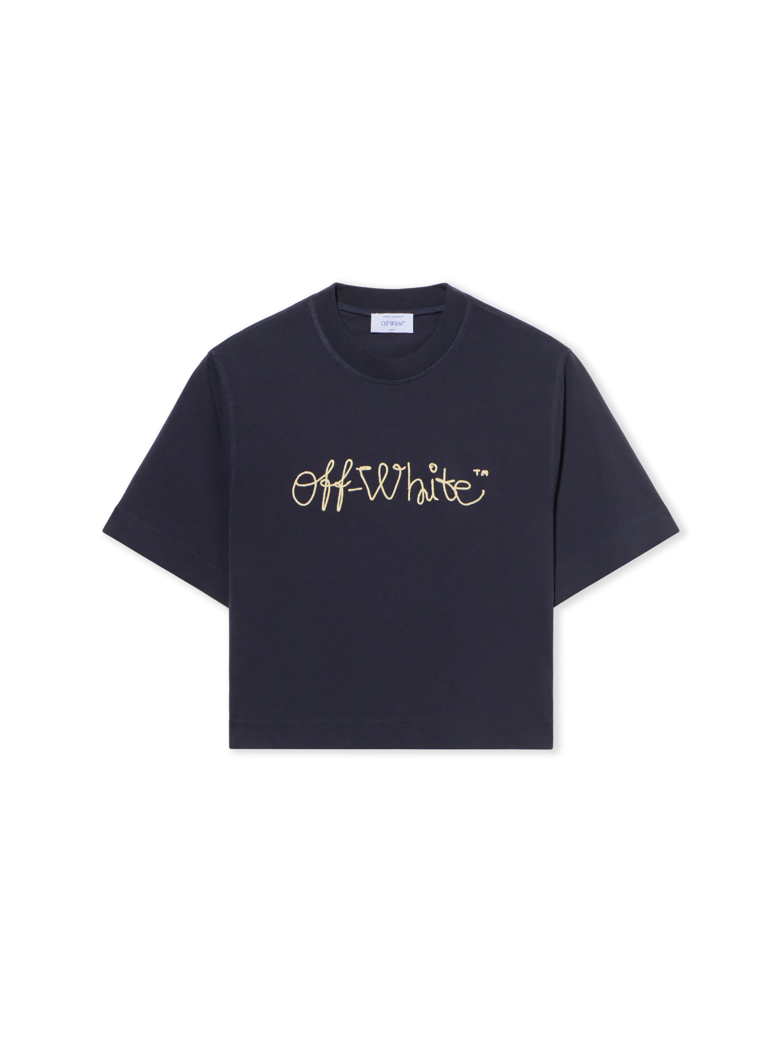 Crafted from premium cotton, this Embroidered Script Logo Crop Tee exemplifies Off-White™'s urban aesthetic with a minimalist cropped silhouette and signature scripted branding. - Crew neck enhances structural simplicity - Short sleeves for understated elegance - Embroidered Off-White™ script logo at front - Minimalist cropped hemline DETAILS - Material: 100% Cotton, Rib Details: 5% Elastane 95% Cotton - Code: OWAA090F25JER0034C19