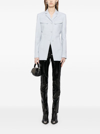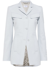 logo-embroidered tailored blazer Highlights - Light blue - Virgin wool - Tailored cut - Embroidered logo - Notched lapels - Two chest flap pockets - Front button fastening - Long sleeves - Straight hem Made in Italy Composition Lining: Viscose 100% Outer: Virgin Wool 100% SIZE & FIT Model measurements Height 5 ft 10 in(1.77 m) Bust/Chest 30.7 in(78 cm) Hips 35.03 in(89 cm) Waist 23.62 in(60 cm) FittingInformation Designed for a slim fit that sits just away from the body offering a close yet comfortable fit Made from a midweight non-stretch fabric This piece fits true to size – take your usual size