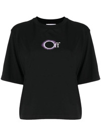 logo-print cotton T-shirt Continuing its seasonal astronomy ethos, Off-White presents this black T-shirt featuring an eclipsed OFF logo print. Crafted from soft Portuguese cotton, it is designed with a relaxed fit for a signature laid-back style. Highlights - Black/white - Cotton - Jersey knit - Logo print at the chest - Graphic print to the rear - Crew neck - Short sleeves - Straight hem Imported Composition Cotton 100%