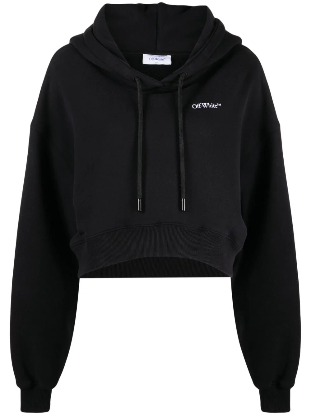 logo-print cropped hoodie Tying in with contemporary logo trends, this cropped hoodie from Off-White features a logo at the chest. Highlights - Black - Logo print at the chest - Drawstring hood - Long sleeves - Cropped Imported Composition Outer: Cotton 100% Lining: Cotton 95%, Elastane 5% SIZE & FIT Model measurements Height 5 ft 10 in(1.77 m) Bust/Chest 28.74 in(73 cm) Hips 35.82 in(91 cm) Waist 24.4 in(62 cm) FittingInformation Designed to be unstructured, offering a loose fit throughout Cropped in length Made from a midweight non-stretch fabric, this piece offers minimal elasticity when worn This piece fits true to size – take your usual size Washing instructions Machine Wash