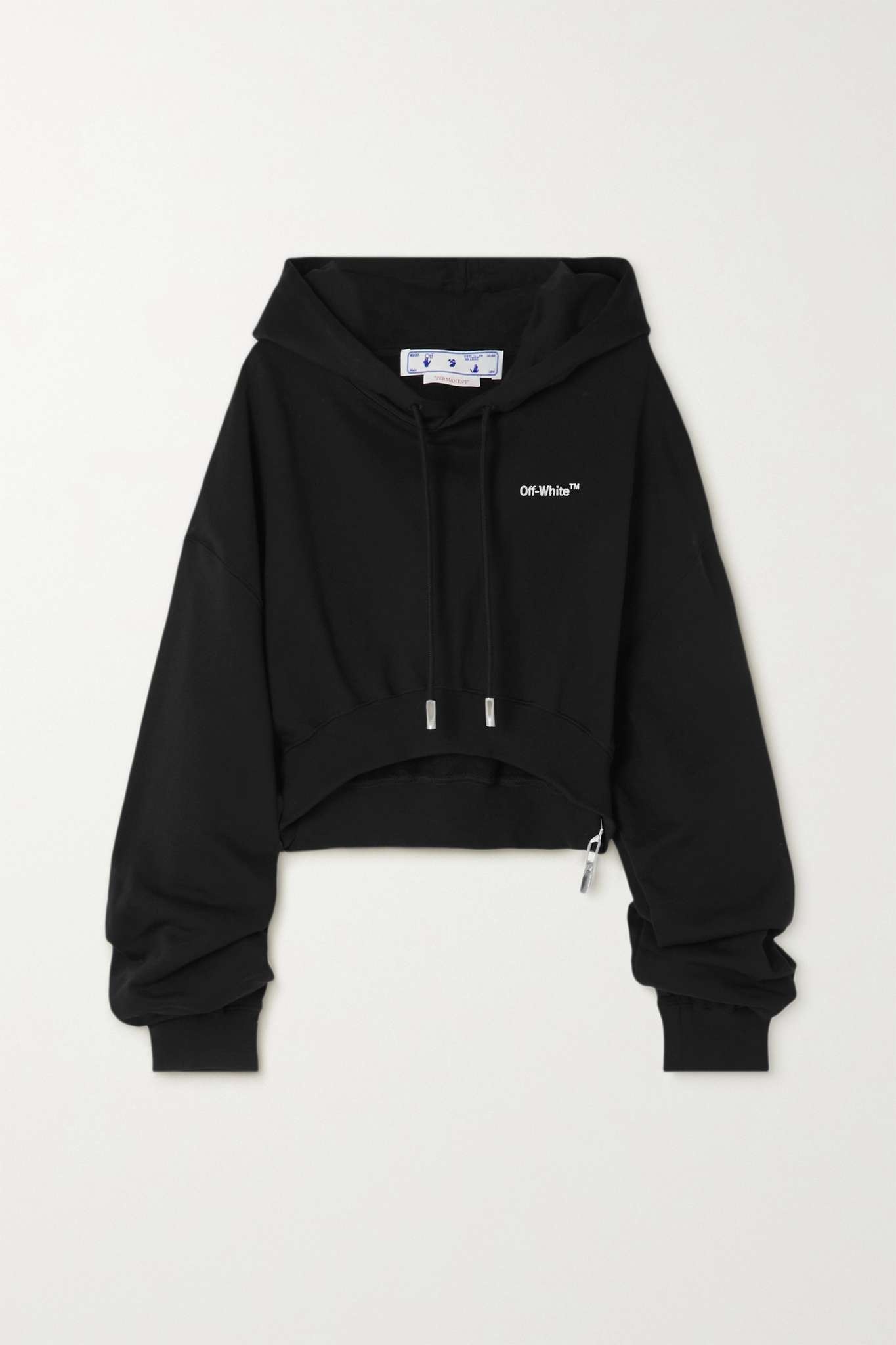 EDITORS'NOTES Off-White's cropped hoodie is embroidered with an understated emblem at the chest in the designer's preferred Helvetica font. Cut from plush cotton-jersey, it has dropped shoulders that enhance the slightly loose fit. Wear yours on more relaxed days with the matching sweatpants. SIZE & FIT - Fits true to size, take your normal size - Designed for a slightly loose fit - Cropped length - Dropped shoulder seam - Mid-weight, slightly stretchy fabric - Model is 175cm/ 5'9" and is wearing a size Small DETAILS & CARE - Black and white cotton-jersey - Slips on - 100% cotton; lining: 53% viscose, 47% cupro