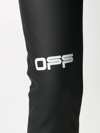 logo print cropped leggings Everyday wear takes on a whole new meaning with these black and white logo print cropped leggings from Off-White. Complete with a textured style and a bold printed logo, they're the perfect way to make a fashion statement. What else could you expect from Off-White? Featuring a textured style, a stretch fit, a printed logo to the front, a high waist, a cropped length and a concealed fastening. Made in Italy Composition Viscose 70%, Polyurethane 15%, Polyamide 10%, Spandex/Elastane 5% SIZE & FIT Model measurements Height 5 ft 9 in(1.75 m) Bust/Chest 32.67 in(83 cm) Hips 36.22 in(92 cm) Waist 24.8 in(63 cm) FittingInformation This piece fits true to size. We recommend you get your regular size Cut for a close fit Made with a mid-weight stretch fabric Washing instructions Machine Wash
