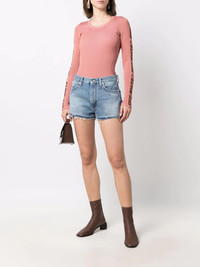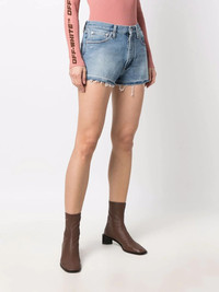 logo-print frayed-edge denim shorts Made from cotton, these OFF-WHITE denim mini shorts are designed with a raw-cut hem. The pair are elevated by a brand bio print to the front, stating that the label is 'defining the grey area between black and white.' Highlights - Blue - Cotton - Logo print to the side - Raw-cut hem - Mid-rise - Belt loops - Front button and zip fastening - Whiskering effect at the thighs - Logo patch to the rear - Classic five pockets - Contrast stitching Made in Italy Composition Outer: Cotton 100% Lining: Cotton 100% SIZE & FIT Model measurements Height 5 ft 10 in(1.77 m) Bust/Chest 35.03 in(89 cm) Hips 35.03 in(89 cm) Waist 23.62 in(60 cm) FittingInformation This piece fits true to size. We recommend you get your regular size Designed to be fitted at the waist and hips, loose over the leg Made with a mid-weight non-stretch fabric Measurement FRONT RISE 10.62 in(27 cm) Washing instructions Machine Wash