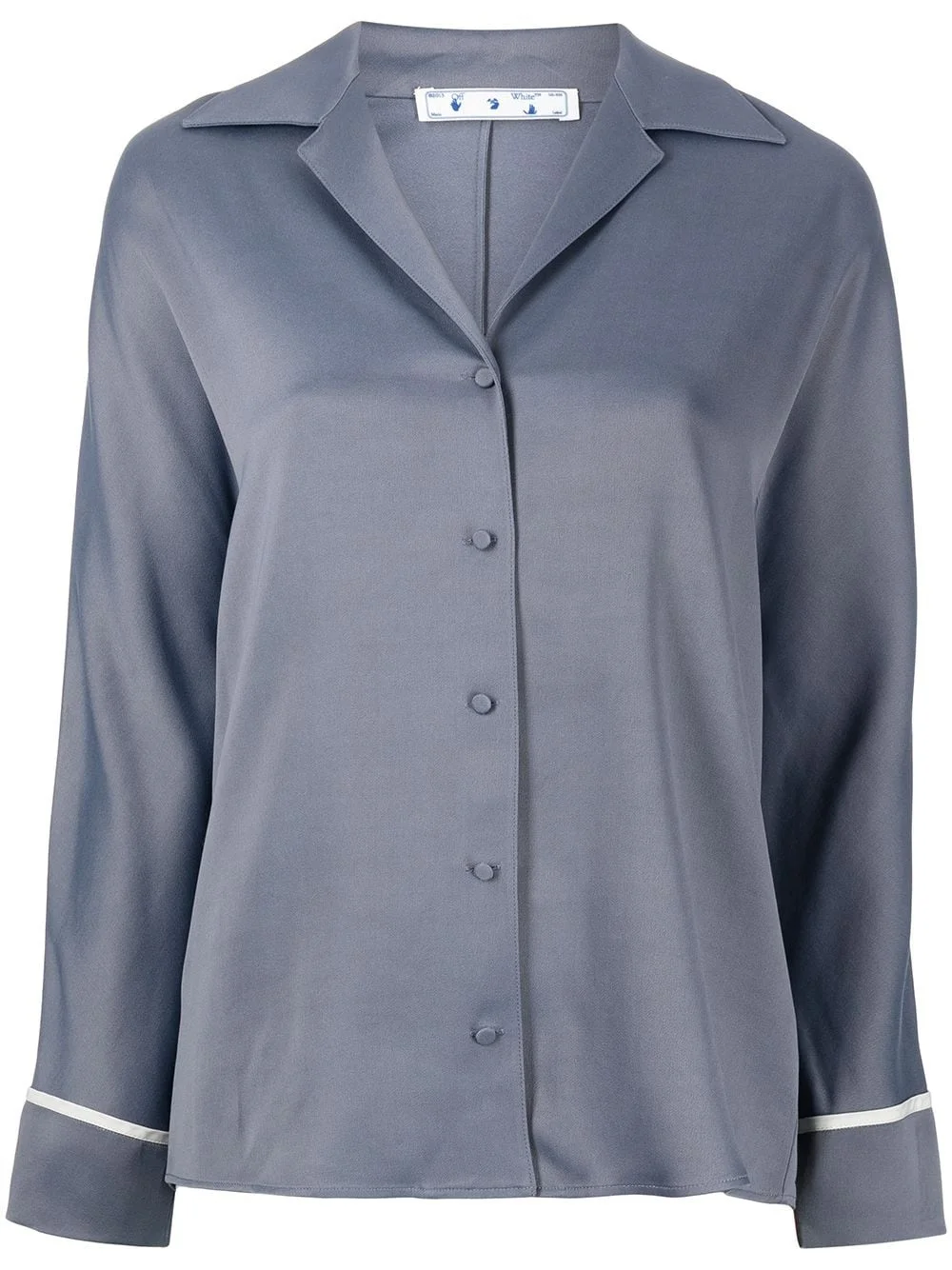logo-print pajama shirt With every collection, Off-White places a signature twist on each design, from logo prints to iconic motifs. Taking an otherwise refined silhouette, this black pajama shirt is finished with a miniature logo print to the rear shoulder for a final stamp. Made in Italy Composition Viscose 83%, Virgin Wool 17% Washing instructions Dry Clean Only