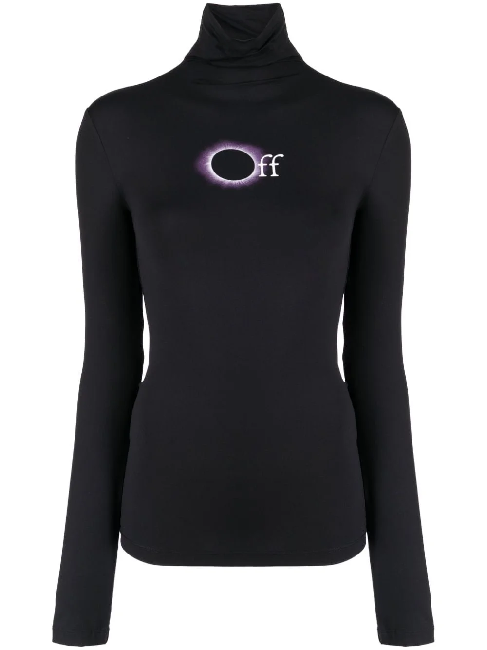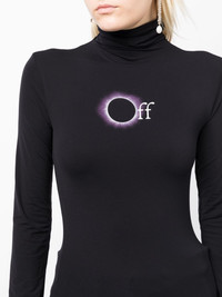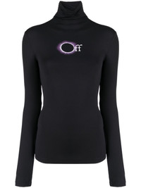 logo-print roll-neck top Rendered in black, this roll-neck top is adorned with Off-White's logo at the front in an eclipse design, showcasing the brand's penchant for graphic motifs. Highlights - Black/white - Stretch-design - Logo print to the front - Roll neck - Long sleeves - Straight hem Imported Composition Polyamide 87%, Elastane 13% SIZE & FIT Model measurements Height 5 ft 9 in(1.76 m) Bust/Chest 31.1 in(79 cm) Hips 35.03 in(89 cm) Waist 24.4 in(62 cm) FittingInformation Designed for a close fit throughout Made from a lightweight stretch fabric, this piece offers elasticity and flexibility when worn This piece fits close in all sizes – take your usual size Washing instructions Machine Wash