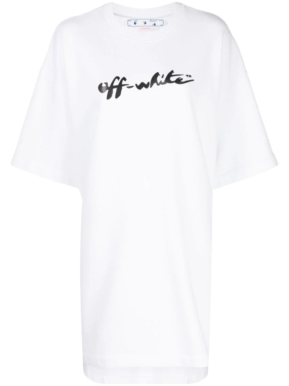 logo-print T-shirt dress Off-White displays its love for bold branding through this white T-shirt dress. It's cut from cotton to a relaxed silhouette and is defined by a brushstroke-style logo print at the chest which draws the brand’s streetwear origins into sharp focus. Highlights - White - Cotton - Logo print at the chest - Crew neck - Drop shoulder - Short sleeves - Straight hem - Thigh-length Imported Composition Cotton 95%, Elastane 5% Outer: Cotton 100% Washing instructions Machine Wash