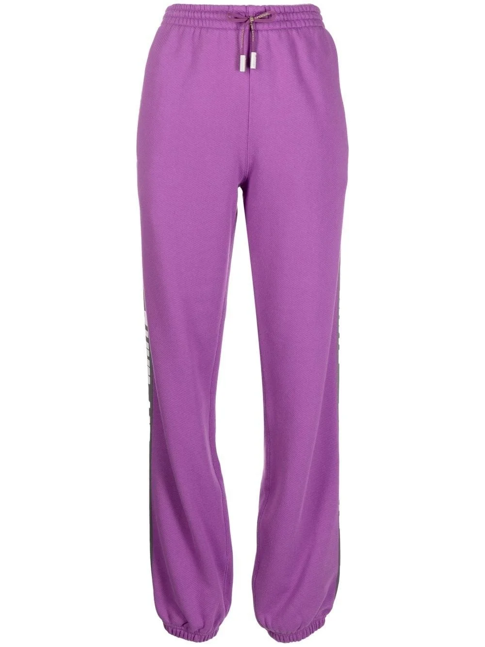 logo-tape cotton track pants These vibrantly-hued track pants from Off-White showcase the colourful mood of the brand's SS22 collection. They're presented in a bold purple colourway for an eye-catching appeal. Imported Composition Cotton 100% SIZE & FIT Model measurements Height 5 ft 10 in(1.78 m) Bust/Chest 30.31 in(77 cm) Hips 34.64 in(88 cm) Waist 25.59 in(65 cm) FittingInformation This piece fits true to size. We recommend you get your regular size Designed to be loose over the leg with a fitted waist and hem Made with a mid-weight fabric Washing instructions Machine Wash
