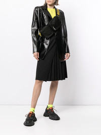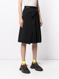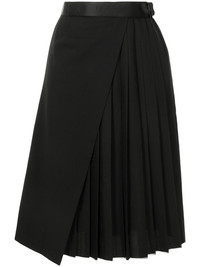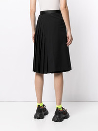 logo-tape detail pleated skirt Belt up. Off-White adds a tonal twist with logo-tape detailing at the top of this A-line skirt. Subtlety says it all - you've mastered smart style and streetwear simultaneously. Highlights - Black - Tonal design - Logo-tape detailing - Belted waist - Fully pleated Made in Italy Composition Polyester 100%, Viscose 57%, Wool 39%, Spandex/Elastane 4%