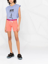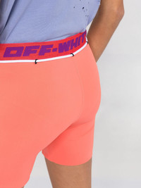 logo-waistband track shorts coral/dark purple two-tone design logo waistband stretch-design Imported Composition Polyamide 59%, Spandex/Elastane 41% SIZE & FIT Model measurements Height 5 ft 9 in(1.76 m) Bust/Chest 31.88 in(81 cm) Hips 35.43 in(90 cm) Waist 24.8 in(63 cm) FittingInformation This piece fits true to size. We recommend you get your regular size Cut for a close fit Made with a mid-weight stretch fabric Washing instructions Hand Wash