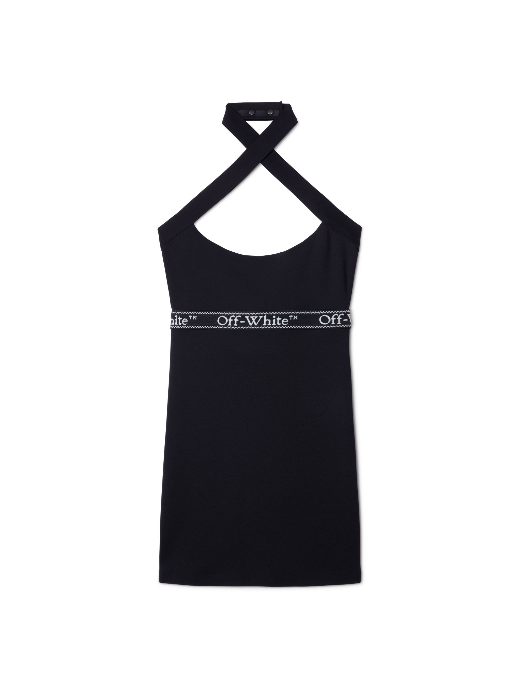 This mini dress is enriched with elastane and features a cross-over halterneck with adjustable poppers. A logo band wraps the waist. Close fit. MATERIALS 10% Elastane 90% Polyamide FITTING Model Gao Qi wears size S Height: 5’ 10" (179 cm) Waist: 24” (59 cm) Hips: 35” (88 cm)
