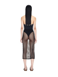 This beach cover-up is constructed from 100% cotton mesh and features logo bands down to the hem of the mid-length skirt. Made in Italy. MATERIALS 100% Cotton FITTING Model Gao Qi wears size 40 Height: 5’ 10" (179 cm) Waist: 24” (59 cm) Hips: 35” (88 cm)