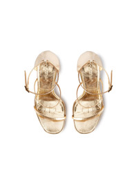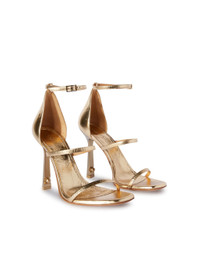 Gold lollipop strappy sandal featuring tonal strap on the ankle and gold pearl on the heel. MATERIALS Outer: 100% Leather Lining: 100% Leather Sole: 100% Leather FITTING Bust 0cm Height 0cm Hips 0cm Waist 0cm