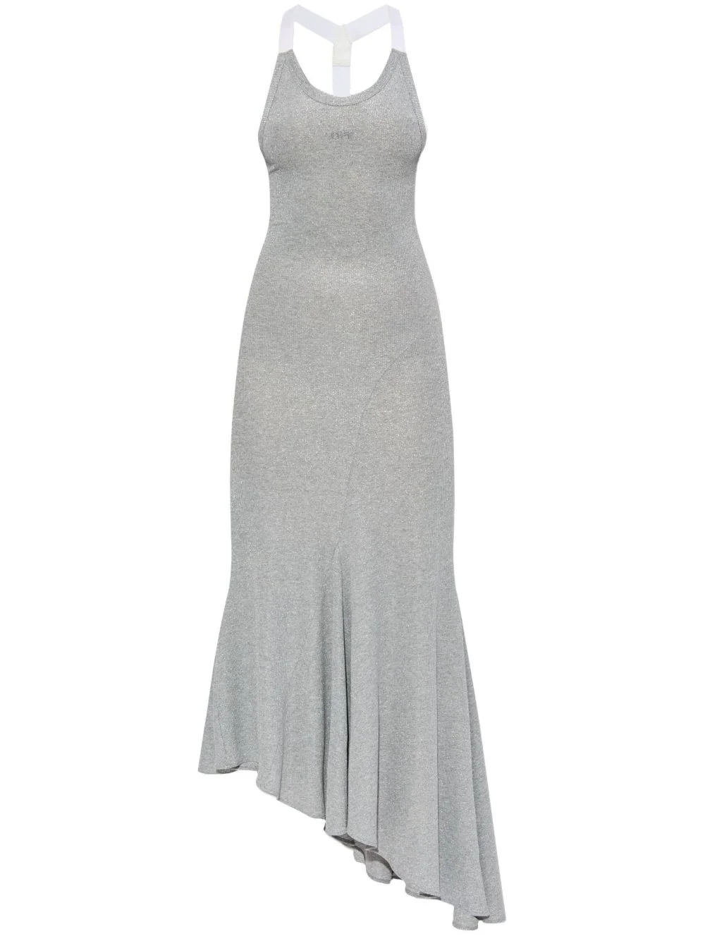 ribbed-knit midi dress Highlights - Ash grey - Scoop neck - Open back - Sleeveless - Flared hem Made in Italy Composition Viscose 76%, Polyamide 11%, Metallised Fibres 11%, Spandex/Elastane 2%