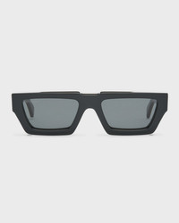- Off-White "Manchester" rectangle sunglasses in acetate - Lens/bridge/temple (in mm): 54-19-140 - Solid lenses; logo on corner - Saddle nsoe bridge - Thin, tapered arms - Hand wash, wipe clean - 100% UVA/UVB protection - Made in Italy - Proposition 65 warning for California residents - This product contains perfluoroalkyl and polyfluoroalkyl substances (PFAS). For more information, please visit the manufacturer’s website.
