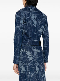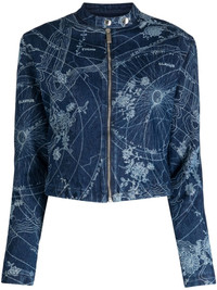 Map-print denim jacket Off-White's Map decorates this jacket, mirroring the brand's adoration for graphic motifs. Patterned all over, the element elevates the casual denim design. Highlights - Indigo blue - Cotton - Denim - Mid-wash - All-over map print - Band collar - Front zip fastening - Long sleeves - Straight hem - Cropped Made in Italy Composition Lining: Polyester 65%, Cotton 35% Outer: Cotton 100% SIZE & FIT Model measurements Height 5 ft 10 in(1.77 m) Bust/Chest 31.49 in(80 cm) Hips 35.43 in(90 cm) Waist 25.19 in(64 cm) FittingInformation Designed for a slim fit that sits just away from the body offering a close yet comfortable fit Sturdy and hard-wearing, this denim piece offers no stretch This piece fits true to size – take your usual size