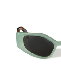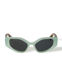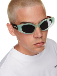 Ice and brown sunglasses featuring white Off-White logo at side. Pentagonal shape and dark grey lens. Logo engraved on the lens. MATERIALS 100% Acetate FITTING Bust 0cm Height 0cm Hips 0cm Waist 0cm