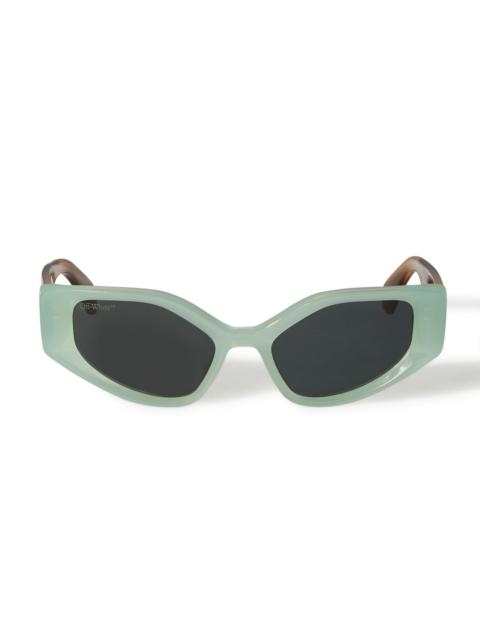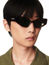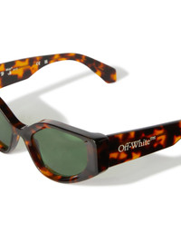 Havana sunglasses featuring white Off-White logo at side. Pentagonal shape and dark grey lens. Logo engraved on the lens. MATERIALS 100% Acetate FITTING Bust 0cm Height 0cm Hips 0cm Waist 0cm