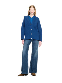 This ribbed knit cardigan is crafted from 100% merino wool and features crystal buttons and an arrow logo on the reverse. Made in Italy. MATERIALS 100% Virgin Wool FITTING Model Sarah Ferguson wears S Height: 5' 10.5'' (179 cm) Chest: 31'' (79 cm) Waist: 23” (60 cm) Hips: 35'' (89 cm)