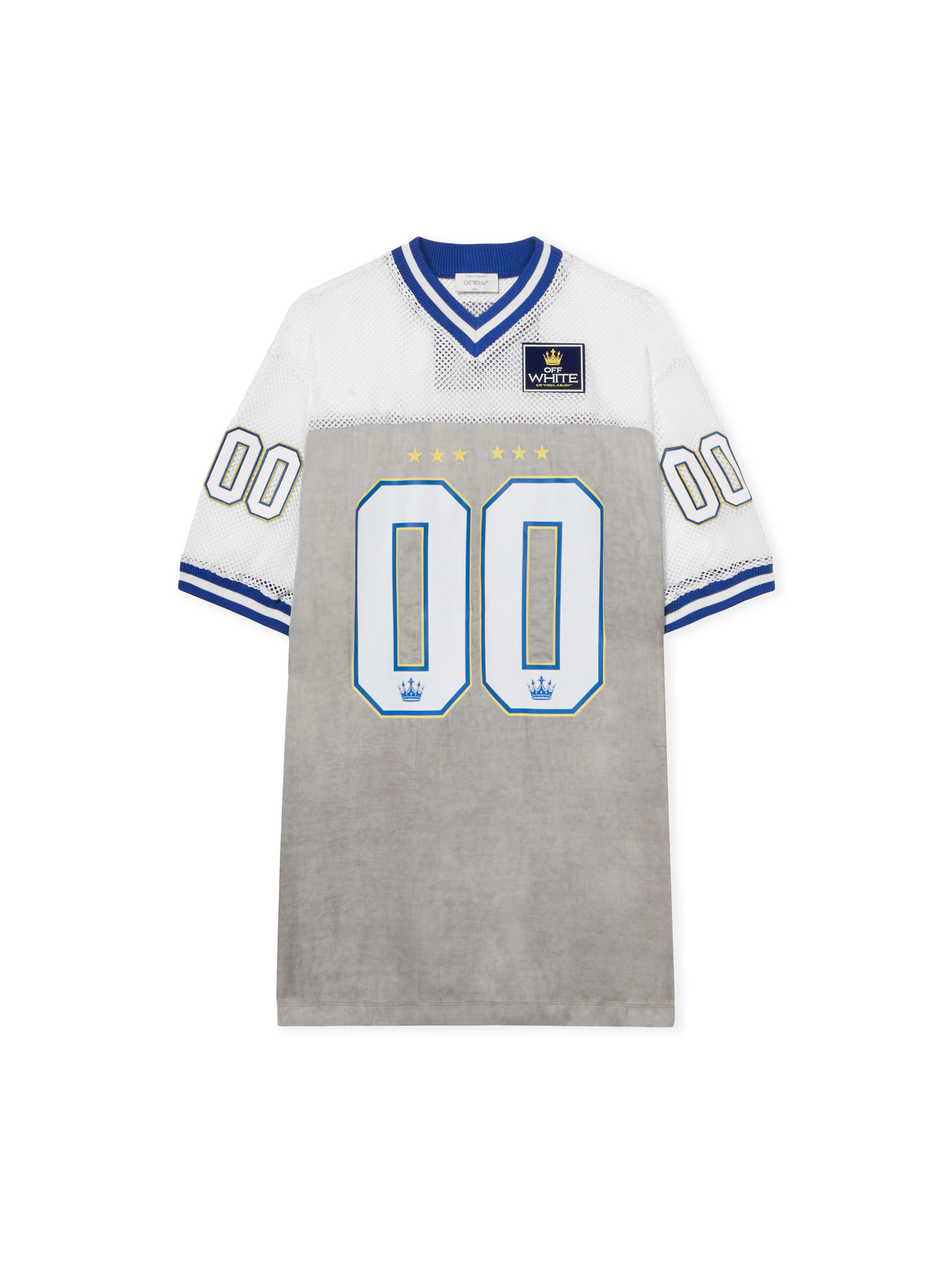 Embrace urban sophistication with the Dyed Vi Sat 00 Football Dress, meticulously crafted in a fusion of mesh and satin for a dynamic, structured silhouette. - Mesh and satin composition - V-neckline with ribbed trim - Short sleeves with mesh overlay - Front and rear graphic detailing - Straight hemline - Signature Off-White™ branding at back - Made in Italy DETAILS - Material: 100% Viscose - Code: OWDB55GF25FAB0010647