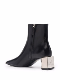 OFF-WHITE Nappa Hex Nut ankle boots Reflecting Off-White's approach of 'embracing the now in a sophisticated manner', these boots combine a classic leather upper with a metallic block heel. This silver-tone design detail creates a focal point out of a functional element of the pair. Highlights black/silver-tone leather metallic effect almond toe side zip fastening ankle-length low block heel Made in Italy Composition Outer: Leather 100% Sole: Leather 100% Lining: Leather 100% Designer style ID: OWID008F21LEA0011000