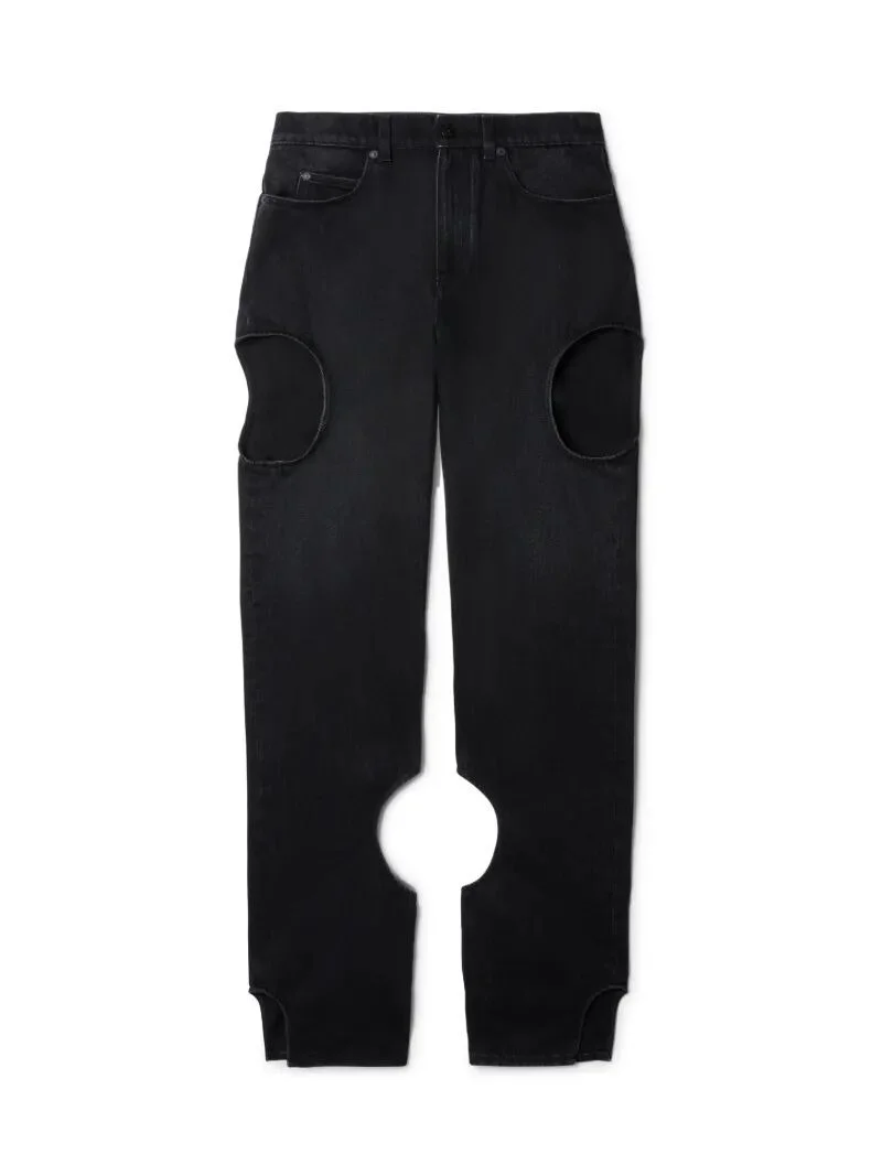 These straight-cut jeans are crafted from 100% cotton with a vintage faded wash. They feature meteor cut-out details. Made in Italy. DETAILS - Materials:OUTER:Cotton 100%, LINING:Cotton 35%, LINING:Polyester 65% - Code: OWYA06AC99DEN0021000