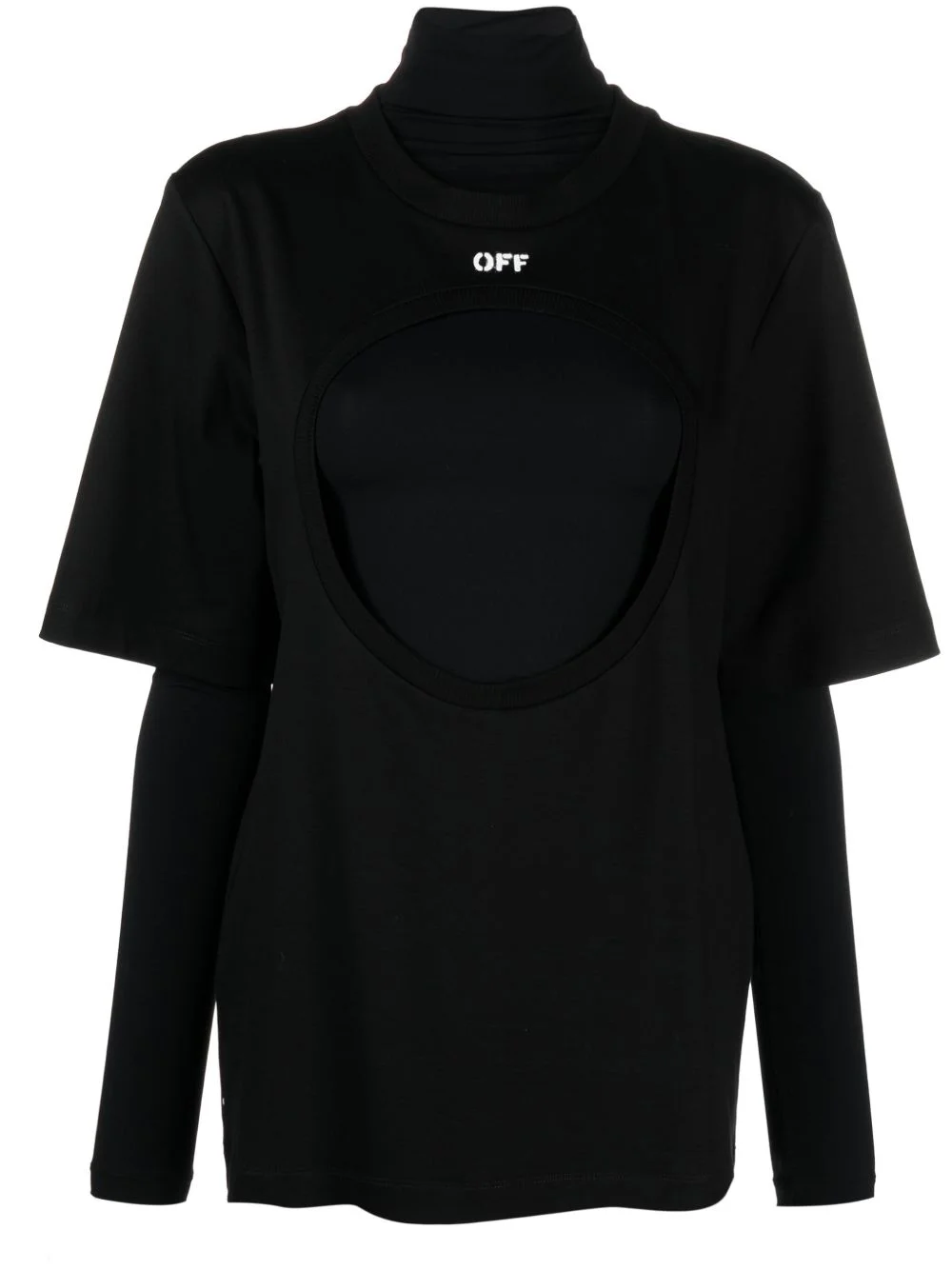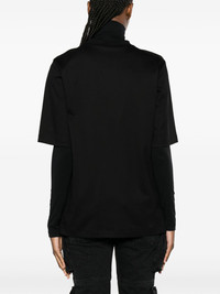 Meteor double-layer cotton T-shirt Highlights - Black/white - Cotton - Double layer - Logo print to the front - Cut-out detailing - Ribbed trim - Crew neck - Short sleeves - Straight hem - Detachable mock-neck base layer Made in Italy Composition Cotton 100%, Polyamide 87%, Spandex/Elastane 13% SIZE & FIT Model measurements Height 5 ft 10 in(1.77 m) Bust/Chest 34.64 in(88 cm) Hips 35.43 in(90 cm) Waist 24.8 in(63 cm) FittingInformation Designed for a relaxed fit, this piece allows for comfort and movement when worn The internal slip sits just away from the body, offering a close yet comfortable fit Made from a midweight stretch fabric, this piece offers elasticity and flexibility when worn This piece fits true to size – take your usual size Washing instructions Hand Wash